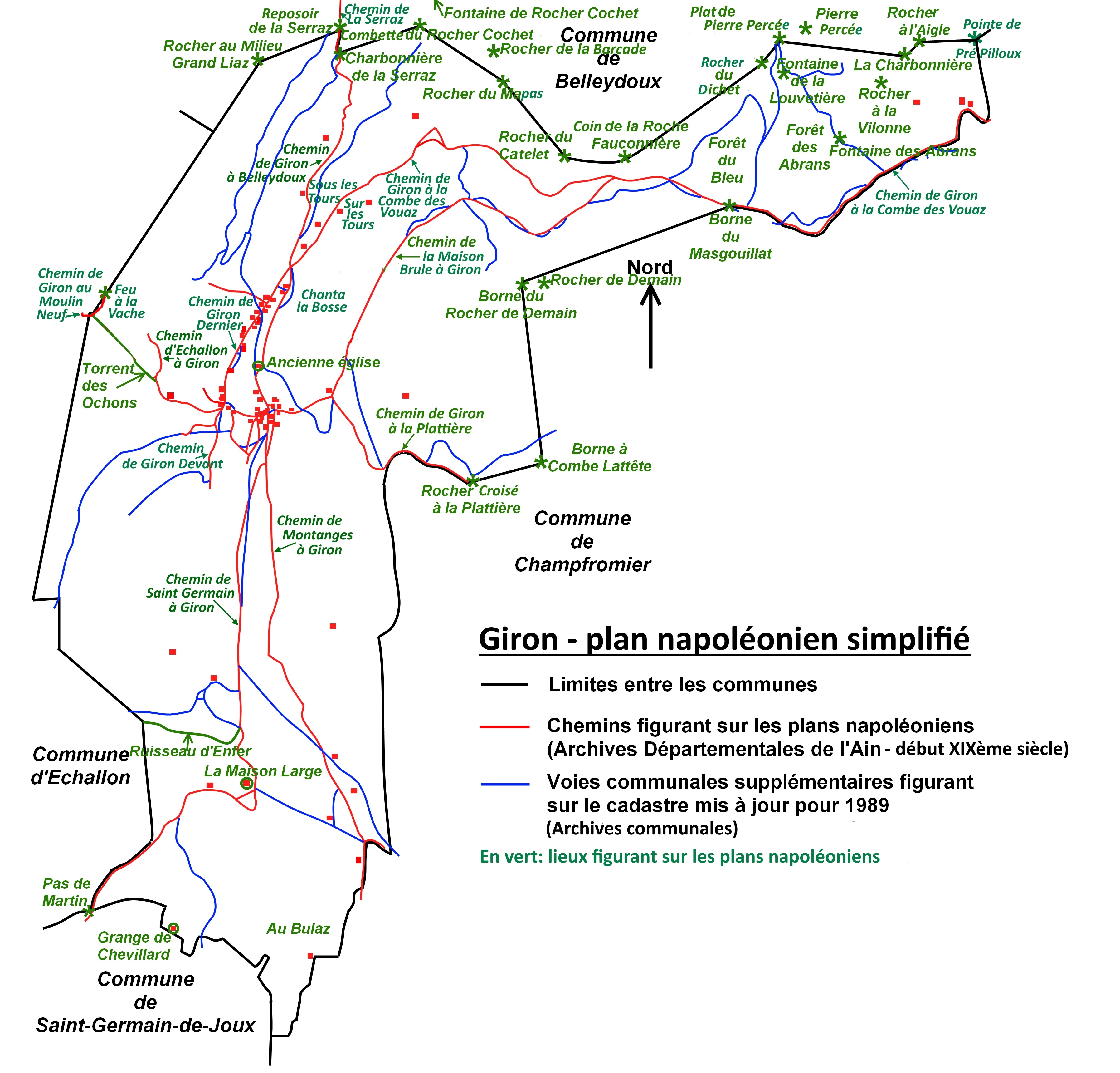 Ce plan simplifié est issu des plans napoléoniens, consultables sur le site Internet des archives départementales de l'Ain.
